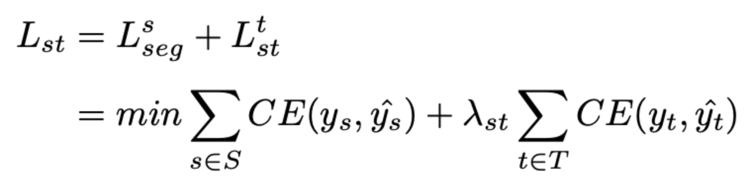 - 위와 같이 생성된 target domain에 대한 pseudo label로 다음과 같은 pixel-wise cross entropy를 이용해 network weight를 업데이트한다. 아래는 해당 loss이다.