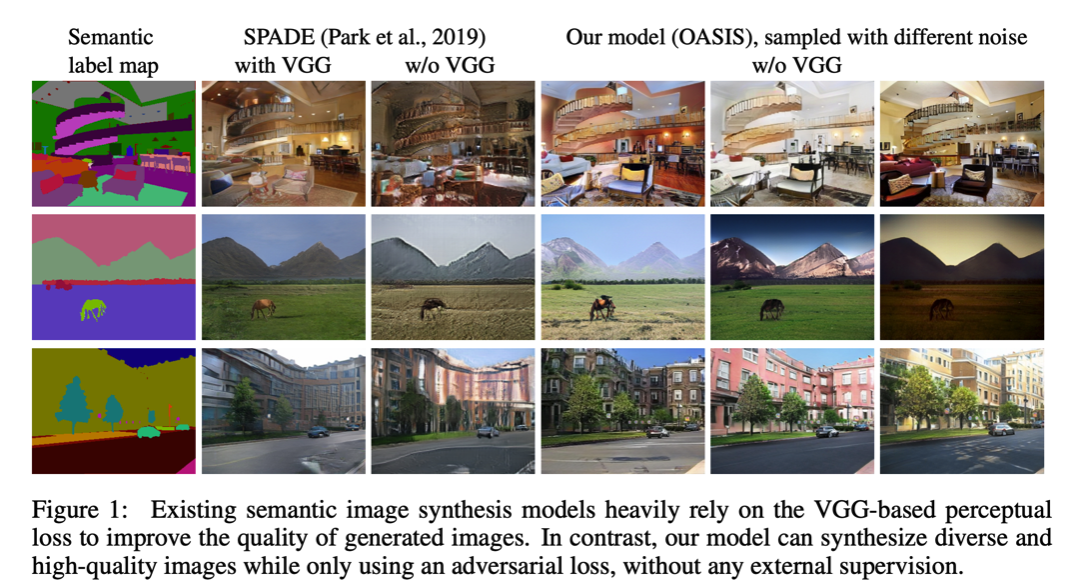- 기존의 Semantic Image Synthesis를 위한 GAN model들은 VGG-based perceptual loss에 지나치게 의존한다
