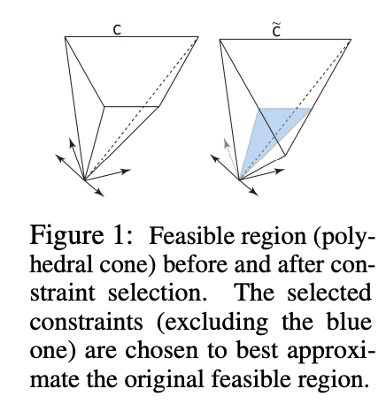 - Replay buffer를 구성하는 sample selection 문제를 constraint reduction problem으로 formulate한 논문. 목표는 original constraints의 feasibel region을 가장 잘 approximate할 수 있는 constraints의 fixed subset을 선택하는 것이다. 그리고 이는 replay buffer 내 샘플들의 diversity를 maximize하는 것과 같다.