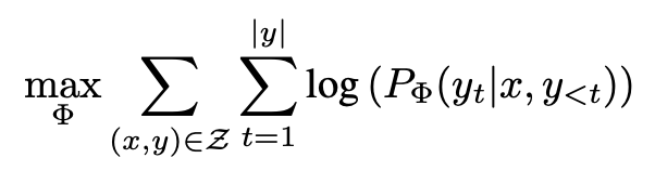 - Downstream task의 log likelihood를 maximize 시키는 값을 찾겠다 ($x$, $y$는 example)