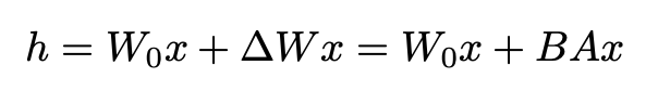 - Pre-trained weight matrix $W_0$에 대해 이 행렬에 대한 update를 low-rank decomposition을 통해 아래와 같이 표현