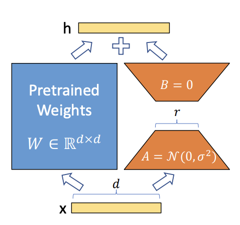 - 학습된 over-parameterized model이 실제로 낮은 low intrinstic dimension에 있다는 것에 영감을 받음. (기존의 over-parameterized model 내의 파라미터는 전부 필요하지 않음)