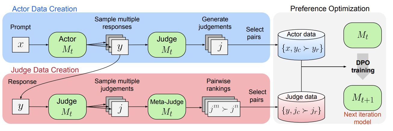 - Self-improvement process, where the model judges its own judgements and uses that feedback to refine its judgment skills.