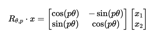 이걸 벡터의 모든 차원에 대해 적용하면, 입력 벡터의 모든 요소가 위치 p에 따라 회전하게 되어, 이렇게 하면 위치 정보가 벡터에 추가되지 않고, 벡터 자체에 내재적으로 포함되게 된다.