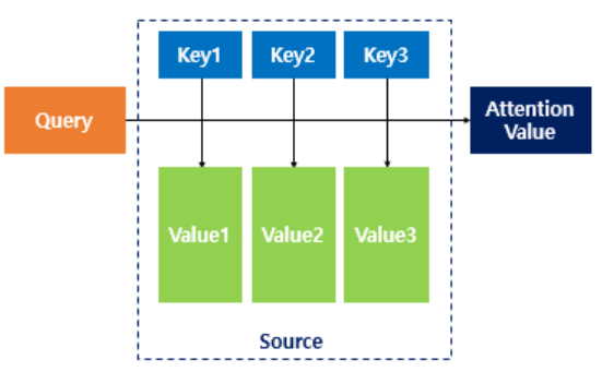 하지만 어텐션 메커니즘에서는 Attention Value가 여기에 하나 더 필요하다고 생각하면 된다.