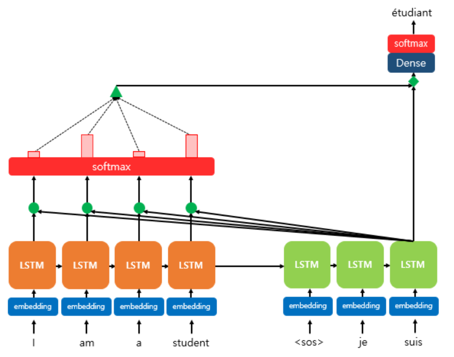 output = Dense( num_decoder_tokens+1, activation="softmax")(decoder_combined_context) # 출력층 (단어 확률값으로 출력)