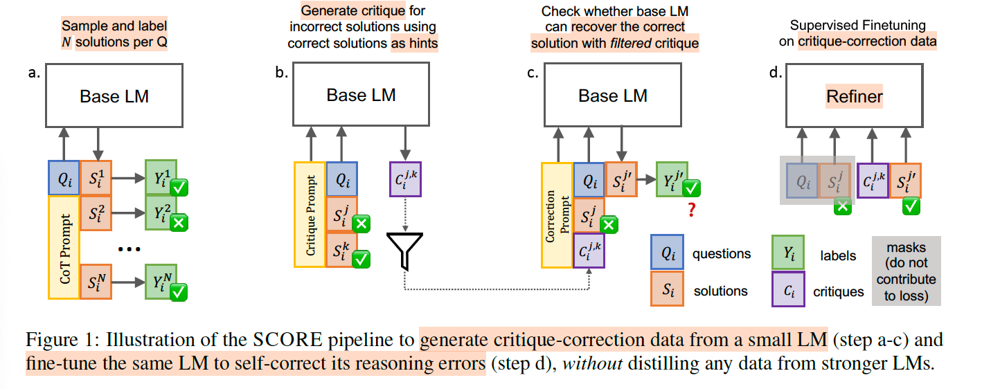 - Small LLM 으로 self-correction data를 모으고 self-refienment ability를 가질 수 있도록 fine-tune