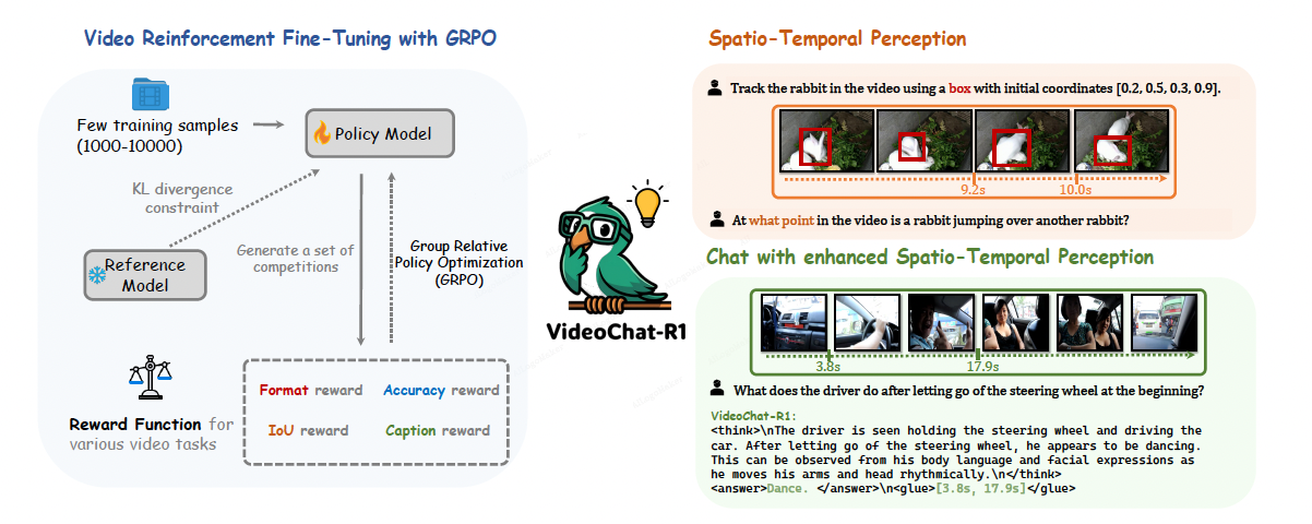 - VideoLLM에 GRPO를 적용한 또 다른 버전, spatio-temporal perception 성능을 높이고자 했다고 한다.