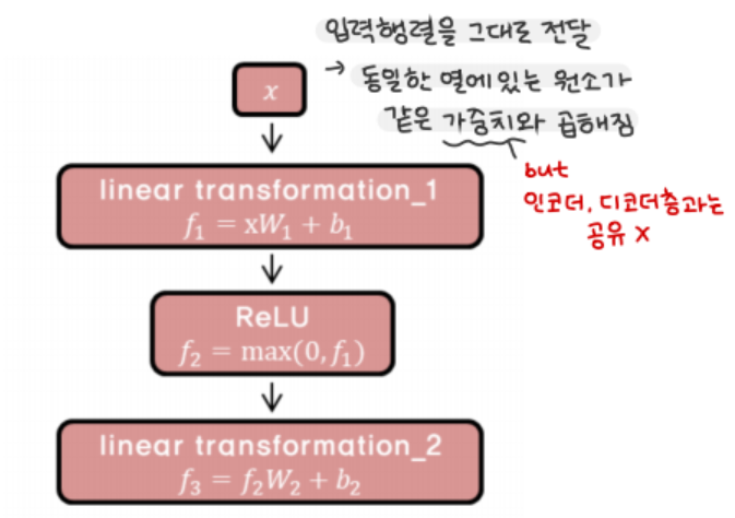 - 유일하게 트랜스포머에서 Self - Attention 층이 아닌 layer