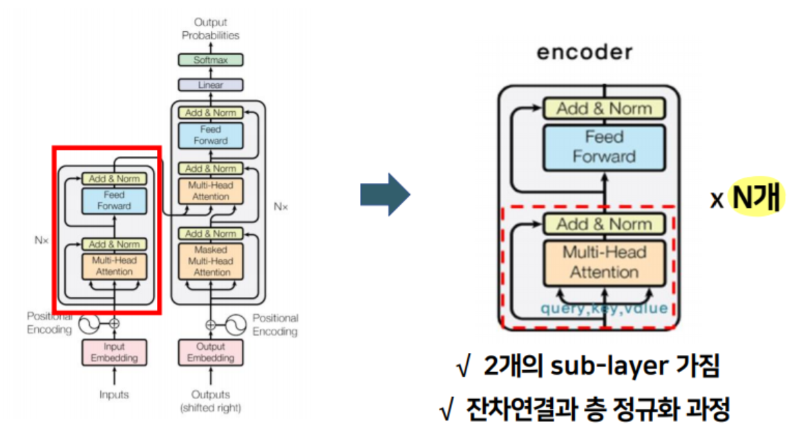 안에는 Attention과 Feed Forward Network로 이루어진 Sub layer가 각각 2개, 3개 존재함