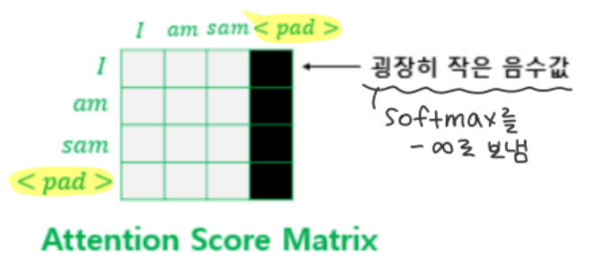 또한 모든 단어 중, 시작 신호나 종료 신호 등 어텐션 연산에 무의미한 단어가 있음
