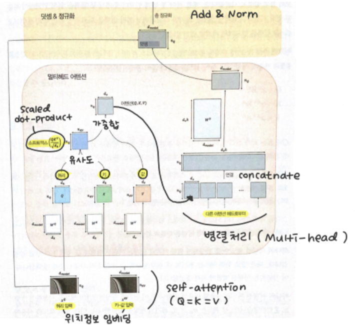 단 Q, K, V의 차원은 d_model보다 작음 (나중에 num_heads 만큼 병렬처리를 하기 위함)