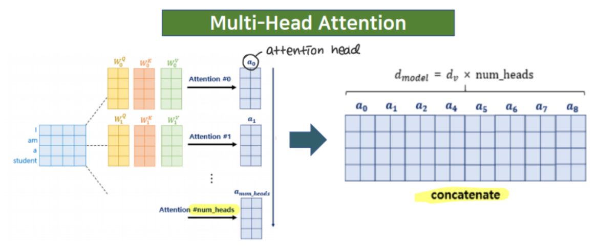 num_heads 만큼 병렬처리를 진행한 다음, 도출된 attention head를 concat해서 최종 attention value를 만든다