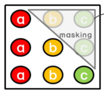 ex) 첫번째 줄 시점을 예측할 때는 미래의 b, c 시점을 가린다