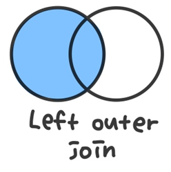 왼쪽에 존재하는 애들은 다가져오고, 만약 오른쪽이 없으면 NULL로 채우면서까지 왼쪽을 가져옴