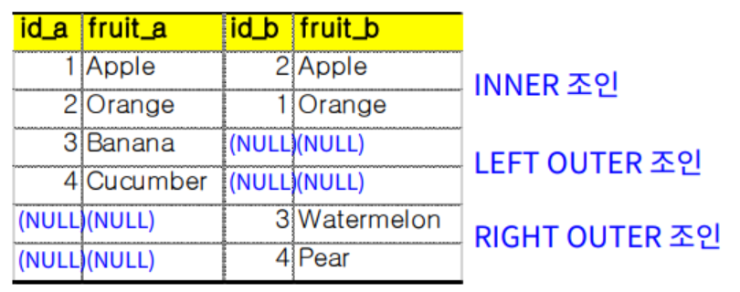 -- 만약에 a에 해당하는 b가 없으면 b는 NULL값으로 출력함