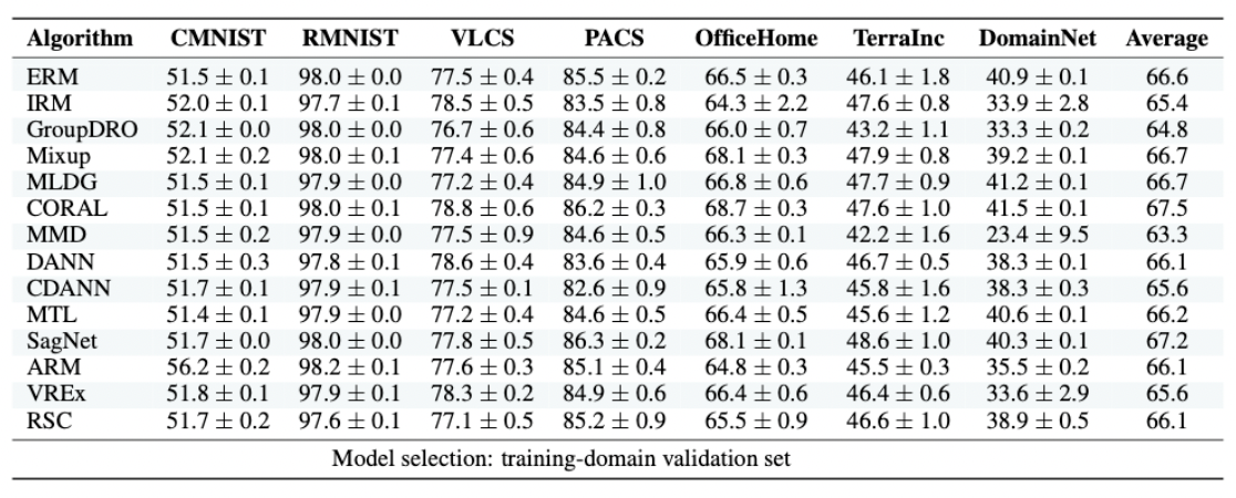 DomainBed는 facebook에서 발표한 DG 분야의 benchmark dataset과 알고리즘 등을 모아 정리한 논문입니다. DomainBed에 수록되어있는 데이터셋과 알고리즘 등은 우선 다음과 같습니다. (참고로 DomainBed는 DG 알고리즘이 출시될 때마다 계속 업데이트됩니다)