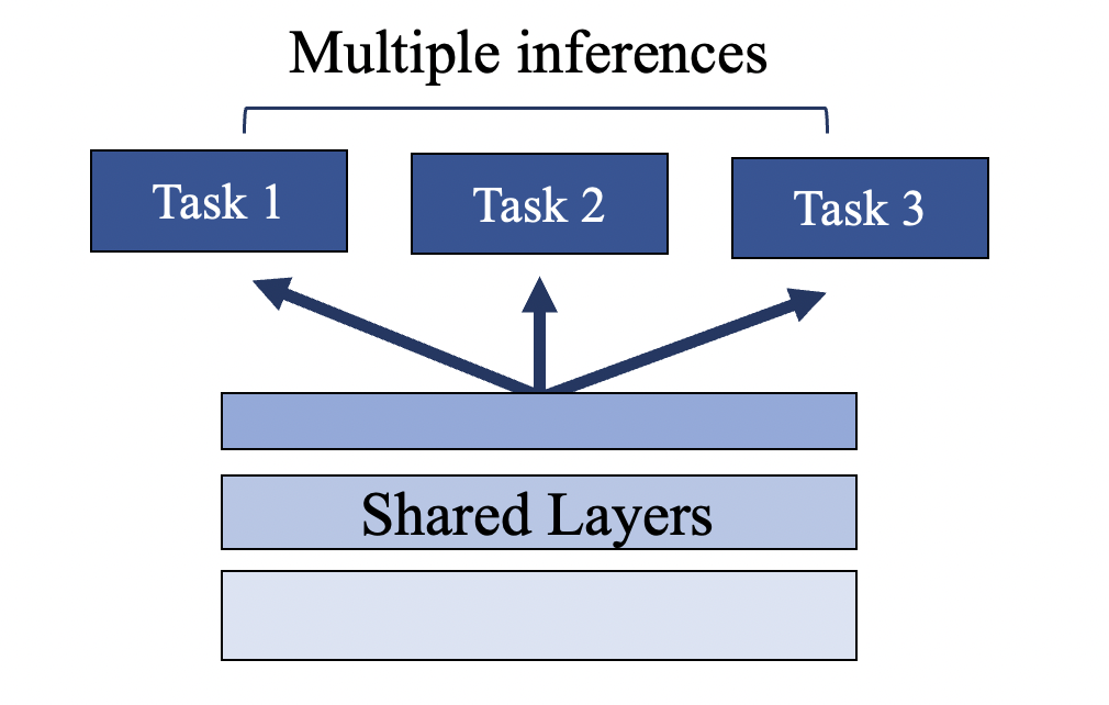 하지만 웨어러블 디바이스나, 로봇, 드론 등에는 여러가지 다양한 센서의 task를 동시에 효율적으로 수행해야 합니다. 따라서 이러한 상황에서 하나의 모델이 weight를 share하고, 하나의 forward pass로 multiple inferences를 생성하는 아래와 같은 형식의 Multi-task learning(MTL)이 점차 다시 각광받게 됩니다. 이러한 MTL 모델은 보다 robust하고 결과적으로 더 나은 성능을 보여준다는 장점이 있었습니다.