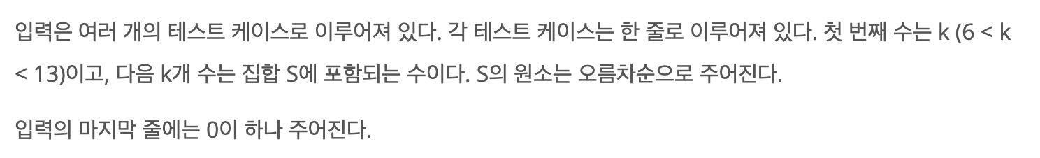 s = list(map(int, input().split())) # lotto 집합 S를 입력