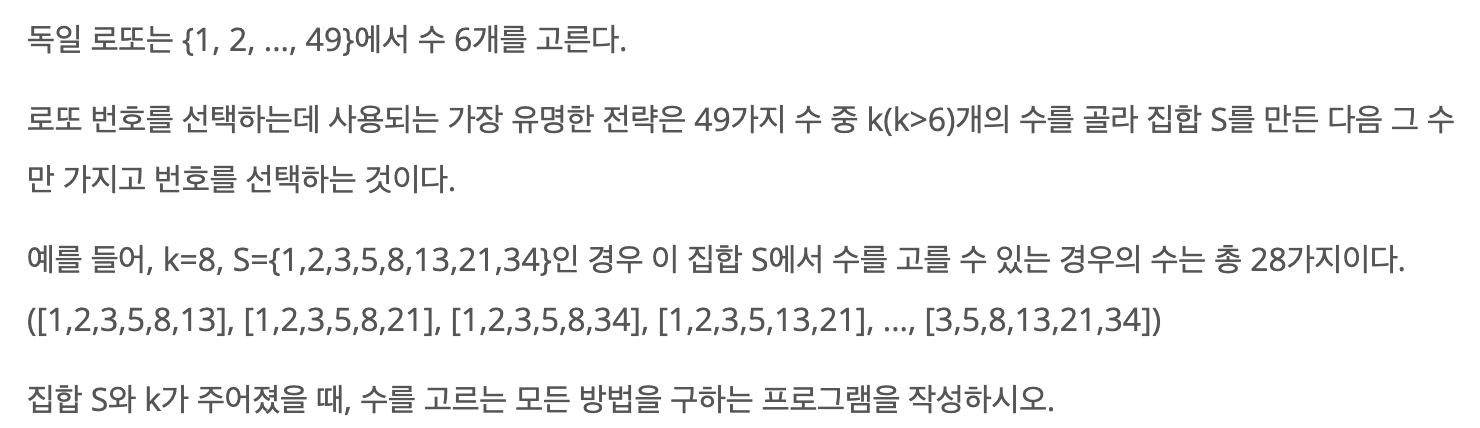 dfs(lotto + [i], s, t_visited) # lotto에 계속 unvisited index 적재