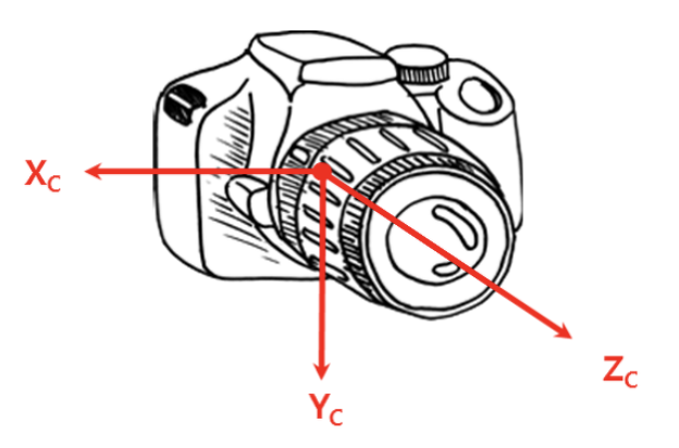 말 그대로 카메라를 기준으로 한 좌표이다. 위 월드 좌표계 안에 카메라가 존재할텐데(따라서 월드 좌표계의 단위와 카메라 좌표계의 단위는 동일할 수밖에 없다), 이 카메라를 기준으로 바라본 좌표를 나타낸다고 이해하면 되겠다. 카메라 좌표계의 원점은 카메라의 "초점"이 된다.